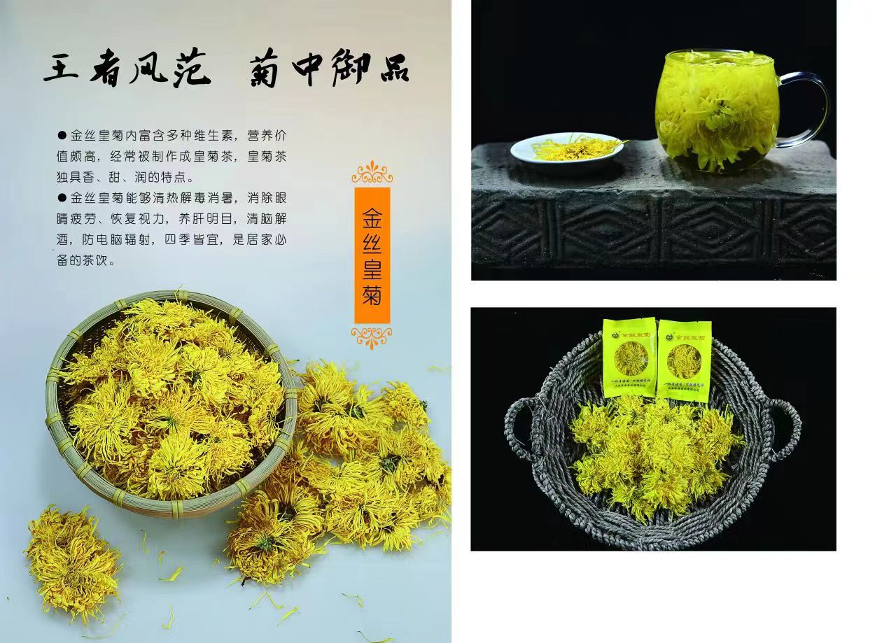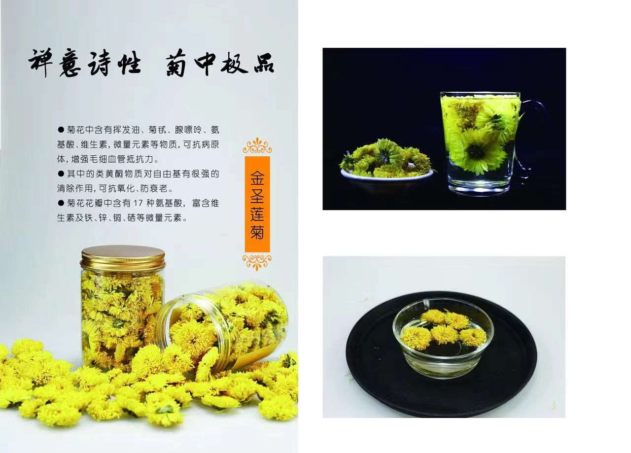“é’莲èŠâ€æ˜¯ä»¥æ³°(å±±)沂(蒙山)山脉é’云山ã€èŽ²èŠ±å±±é—´ç贵的野生èŠèŠ±ï¼Œæçº¯å¤å£®ç²¾å¿ƒåŸ¹è‚²ï¼Œå¹¶èµ‹ä»¥ç¾Žä¸½ä¼ 说而命å。é’莲èŠå¯Œå«å¤šç§è¥å…»ç´ 跟氨基酸,其ä¸è°·æ°¨é…¸ã€å¤©å†¬æ°¨é…¸ã€è„¯æ°¨é…¸ç‰å«é‡è¾ƒé«˜ï¼Œå…·æœ‰æŠ—èŒè§£çƒã€æŠ—ç—…æ¯’ã€æŠ—æ°§åŒ–ã€æŠ—è¡°è€ç‰åŠŸæ•ˆã€‚å…¬å¸ç€åŠ›æ‰“é€ ä¸‰æ¬¾é’莲èŠâ€œé‡‘èŠèŒ—饮â€ï¼šé‡‘å²èƒŽèŠã€é‡‘圣莲èŠã€é‡‘ä¸çš‡èŠï¼Œå…·æœ‰â€œæ¸…è‚æ˜Žç›®ã€å¥è„‘æç¥žã€æ»‹æ´¥æ¶¦è‚ºâ€ç‰åŠŸæ•ˆï¼Œæ˜¯å…»ç”ŸçœŸå“。享有“一æ¯é’莲è„,万般精气神â€ä¹‹ç¾Žèª‰ã€‚