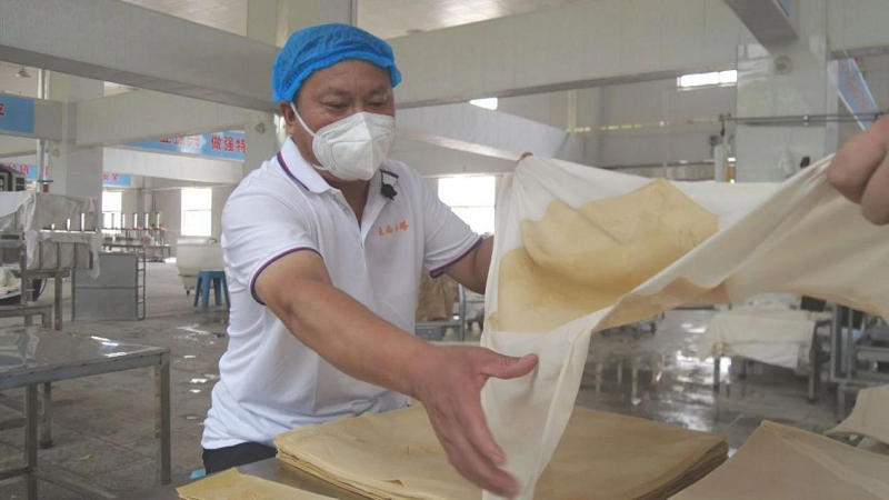 王西水塔豆è…皮制作沿è¢ä¸‰ä»£ä¼ 承手艺,精选颗颗饱满的优质大豆,ç»è¿‡æµ¸æ³¡ã€ç£¨æµ†ã€ç†¬æµ†ã€åŠåŒ…ã€ç‚¹æµ†ã€æ…碎ã€åŽ‹æ¦¨ã€æåŒ…ã€è’¸ç…®ã€æ™¾å¹²ã€æ‰“包11é“夿³•å·¥åºï¼Œé‡‡ç”¨å…·æœ‰ç‰¹å®šPH值åŠå¾®é‡å…ƒç´ 的“水塔â€å¤©ç„¶äº•水,生产出的豆è…皮色泽晶莹ã€è±†é¦™æµ“éƒã€å£æ„Ÿåвé“ï¼Œå¯Œå«æ°¨åŸºé…¸ï¼Œè¥å…»ä»·å€¼é«˜ï¼Œæ˜¯è±†è…çš®ä¸çš„上å“,产å“ä¾›ä¸åº”求,深å—广大美食者喜爱。目å‰ï¼Œâ€œçŽ‹è¥¿æ°´å¡”è±†è…çš®â€åˆ¶ä½œæŠ€è‰ºå·²è¢«åˆ—入泰安市éžç‰©è´¨æ–‡åŒ–é—产。