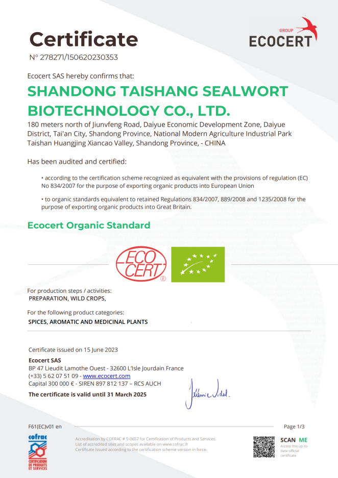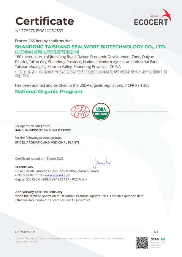 一ã€å•ä½å称:山东泰尚黄精生物科技有é™å…¬å¸